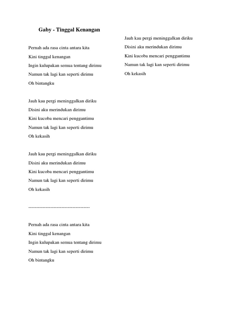 Doc Lirik Dan Chord Gitar Lagu Tinggal Kenangan Gaby Ribhi Azizi Academia Edu